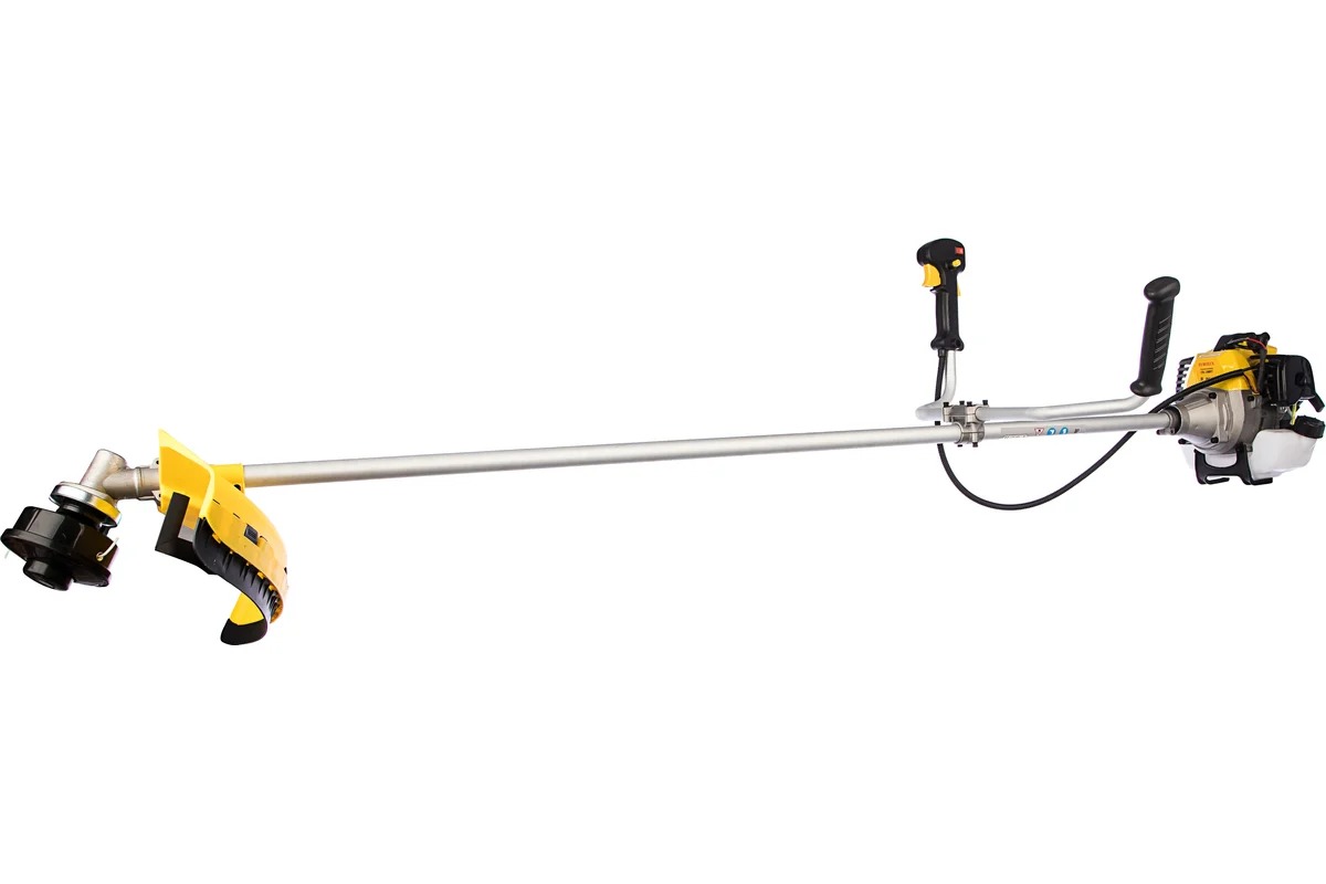 Триммер бензиновый с карбюраторным двухтактным двигателем внутреннего сгорания, предназначен для скашивания травы и мелких кустарников на приусадебных и прочих участках.