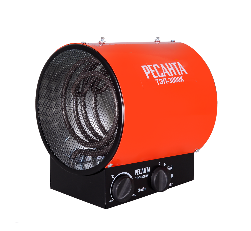 Тепловая электрическая пушка РЕСАНТА ТЭП-3000К предназначена для вентиляции и обогрева жилых и производственных помещений, складов, гаражей, а также для обогрева и сушки в строительстве.