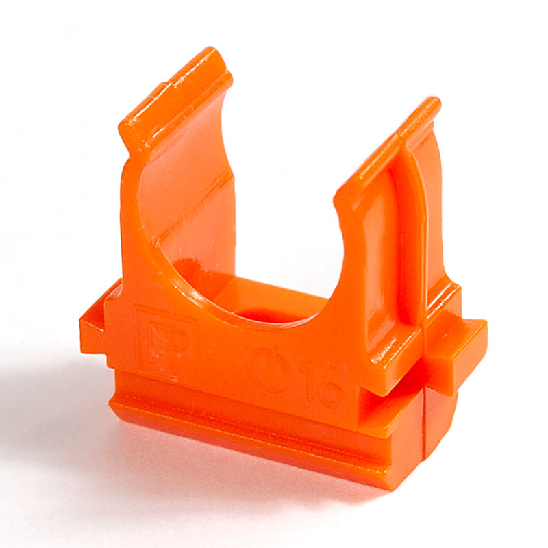 Предназначена для крепления гладких труб ПВХ или гофрированных труб одного диаметра к поверхности стен, потолков, полов или перегородок. Для монтажа предусмотрено технологическое отверстие под дюбель или саморез. Для удобства блочного монтажа состыковываются друг с другом с помощью специальных фиксаторов типа «ласточкин хвост».