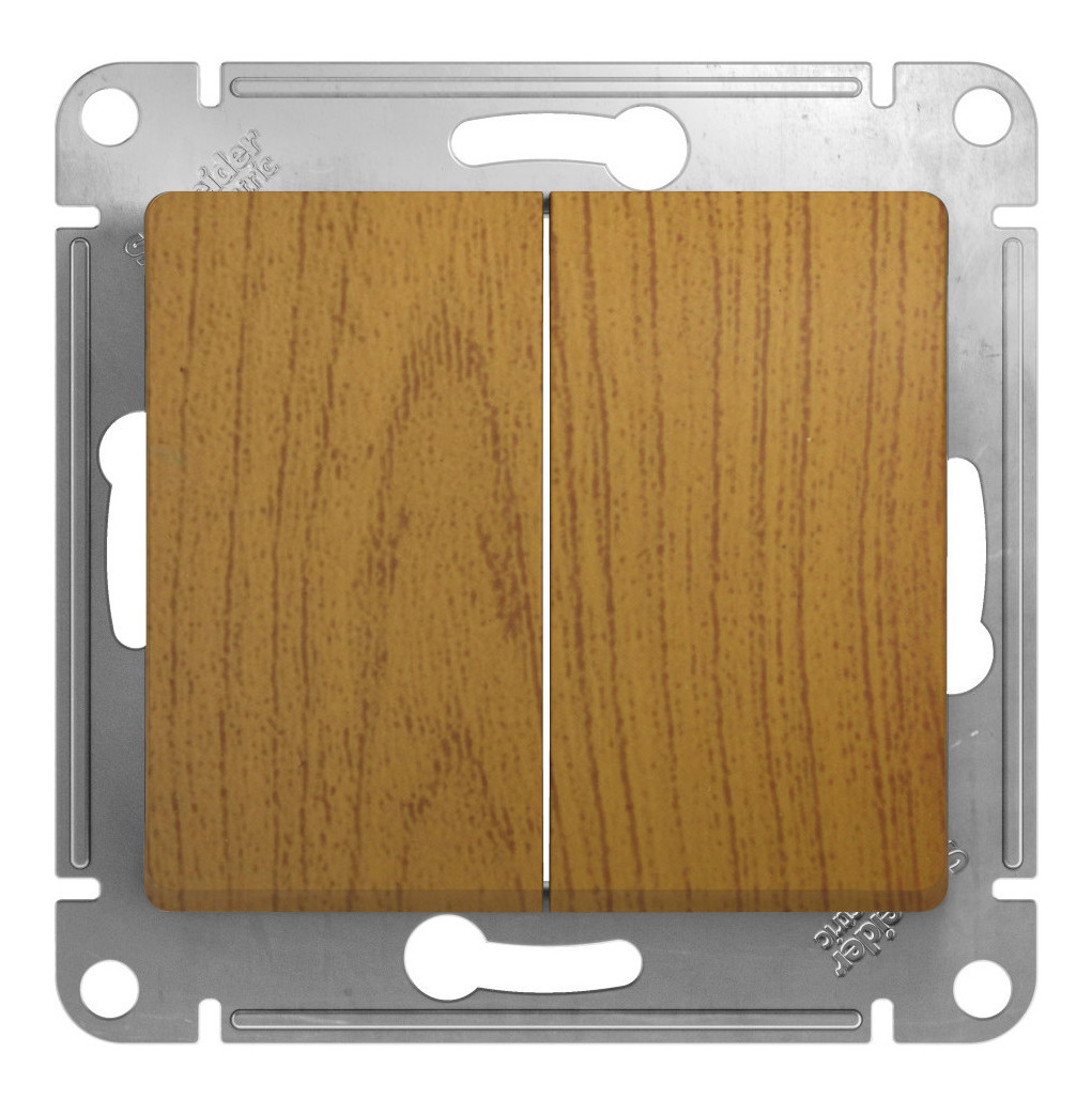 Механизм Glossa (цвет дерево дуб) выключателя 2-клавишного подходит для сетей 250 В, на ток 10 А.