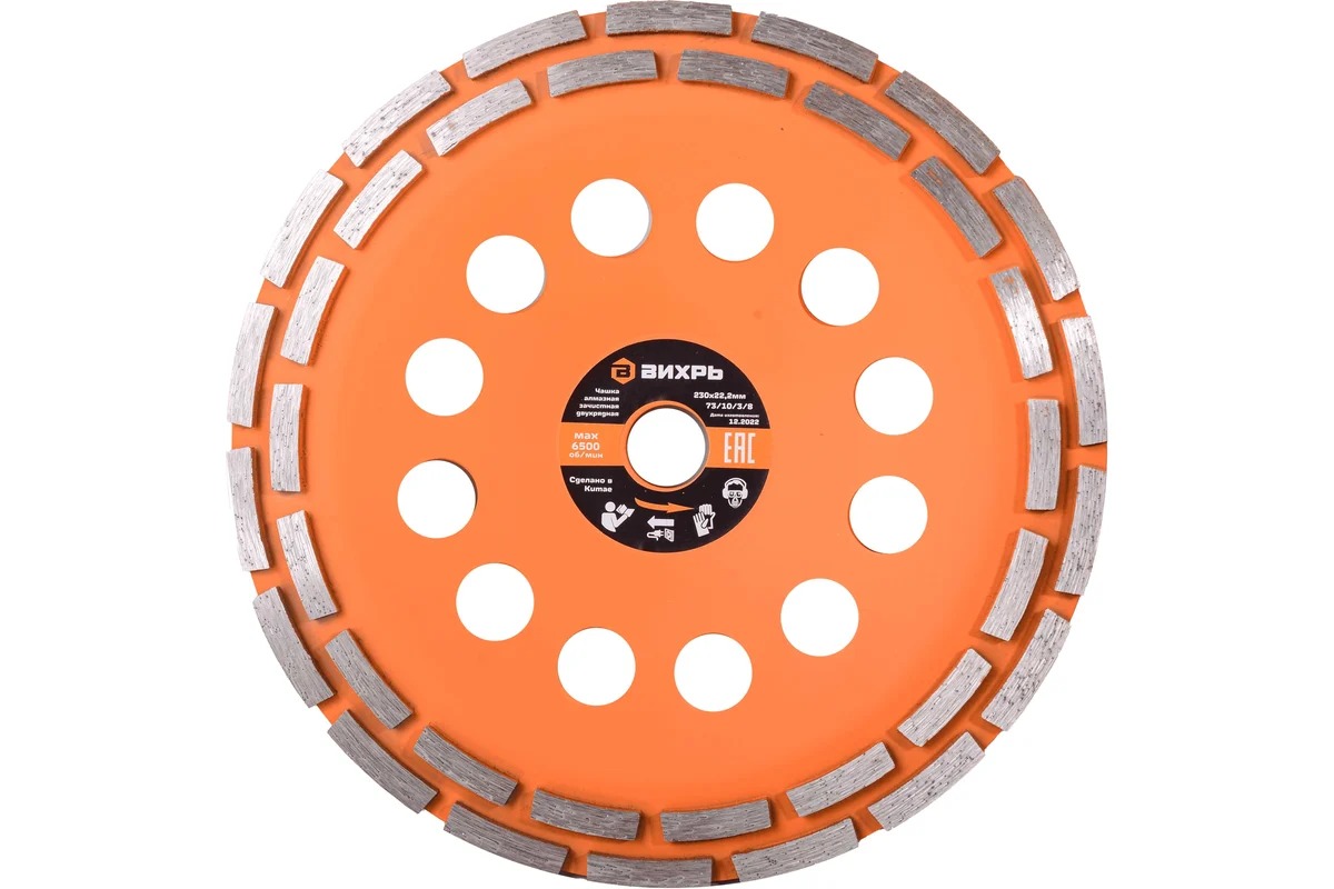 Чашка алмазная зачистная 230мм, двухрядная Вихрь