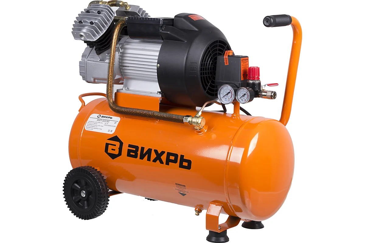 Компрессор ВИХРЬ КМП-400/50 - позволяет нагнетать сжатый воздух в пневмооборудование и пневмоинструменты. Вихрь КМП-400/50 используется для выполнения механических работ широкого плана. Компрессор имеет высокую мощность 2500 Вт, благодаря которой на выходе получается давление 8 бар - это весьма хорошие показатели для современных компрессоров. Производительность модели ВИХРЬ КМП-400/50 составляет 400 л/мин, при объеме ресивера 50 л. Имеются специальные ножки с резиновыми накладками для лучшей устойчивости. Удобная транспортировка компрессора достигается за счёт 2-х колес, идущих в комплекте.