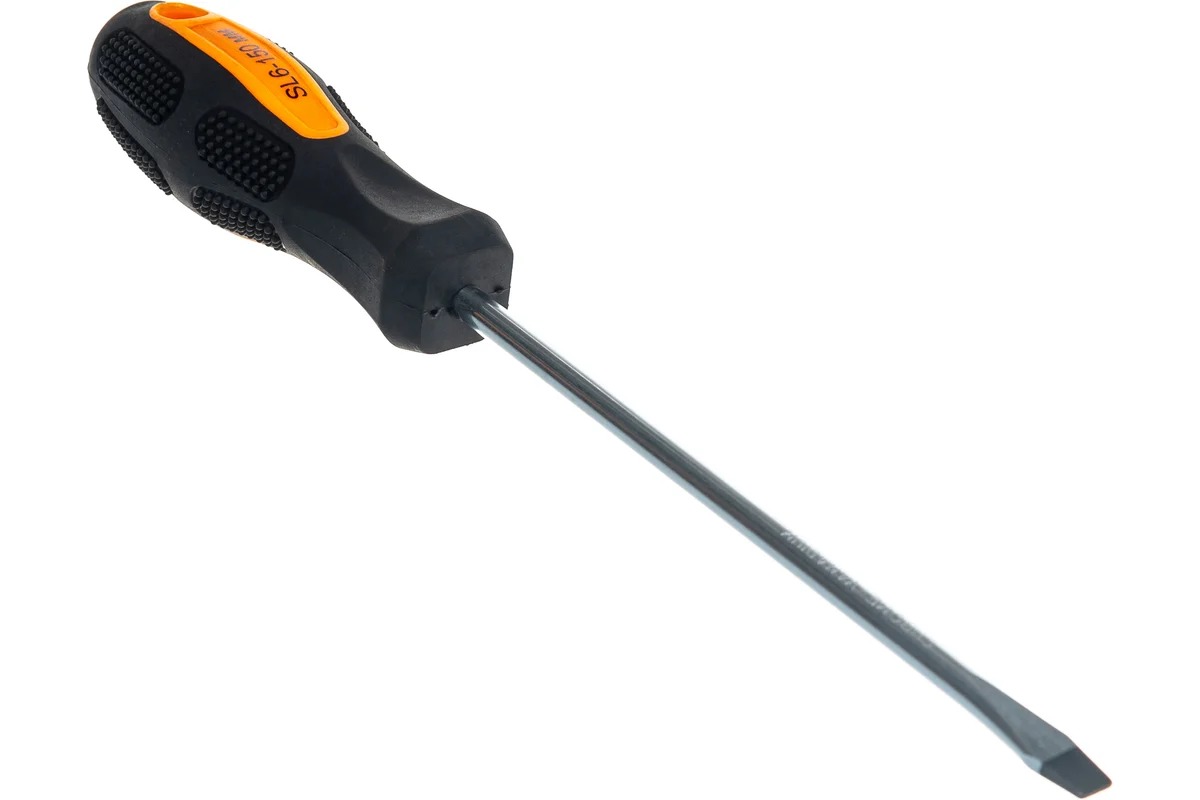 Отвёртка шлицевая ВИХРЬ SL6 150мм для монтажа и демонтажа резьбовых соединений. Стержень из хромованадиевой стали (CrV), полностью закален и имеет хромоникелевое покрытие. Наконечник намагничен. Рукоятка эргономичной формы с отверстием для подвески, изготовлена из противоскользящего материала - двухкомпонентного пластика. Длинный стержень обеспечивает доступ к заглубленному крепежу.