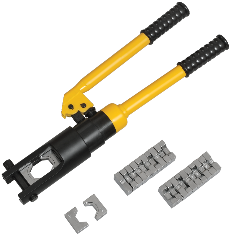 Гидравлические прессы позволяют создавать механические соединения типа кабельная жила-гильза или кабельная жила-наконечник с помощью механической опрессовки. Прессы снабжены сменными матрицами, предназначенными для различных сечений жил.