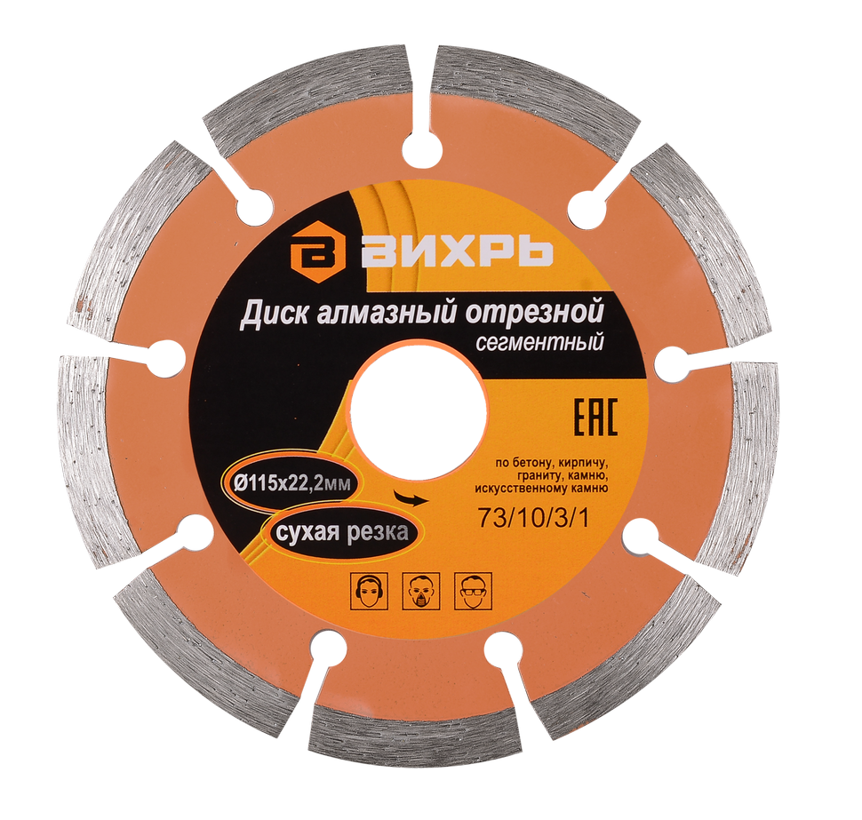 Диск отрезной алмазный 115х22,2мм сегментный, сухая резка Вихрь