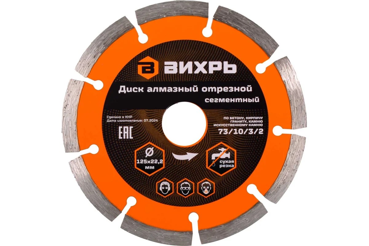 Диск отрезной алмазный 125х22,2мм, сегментный, сухая резка Вихрь