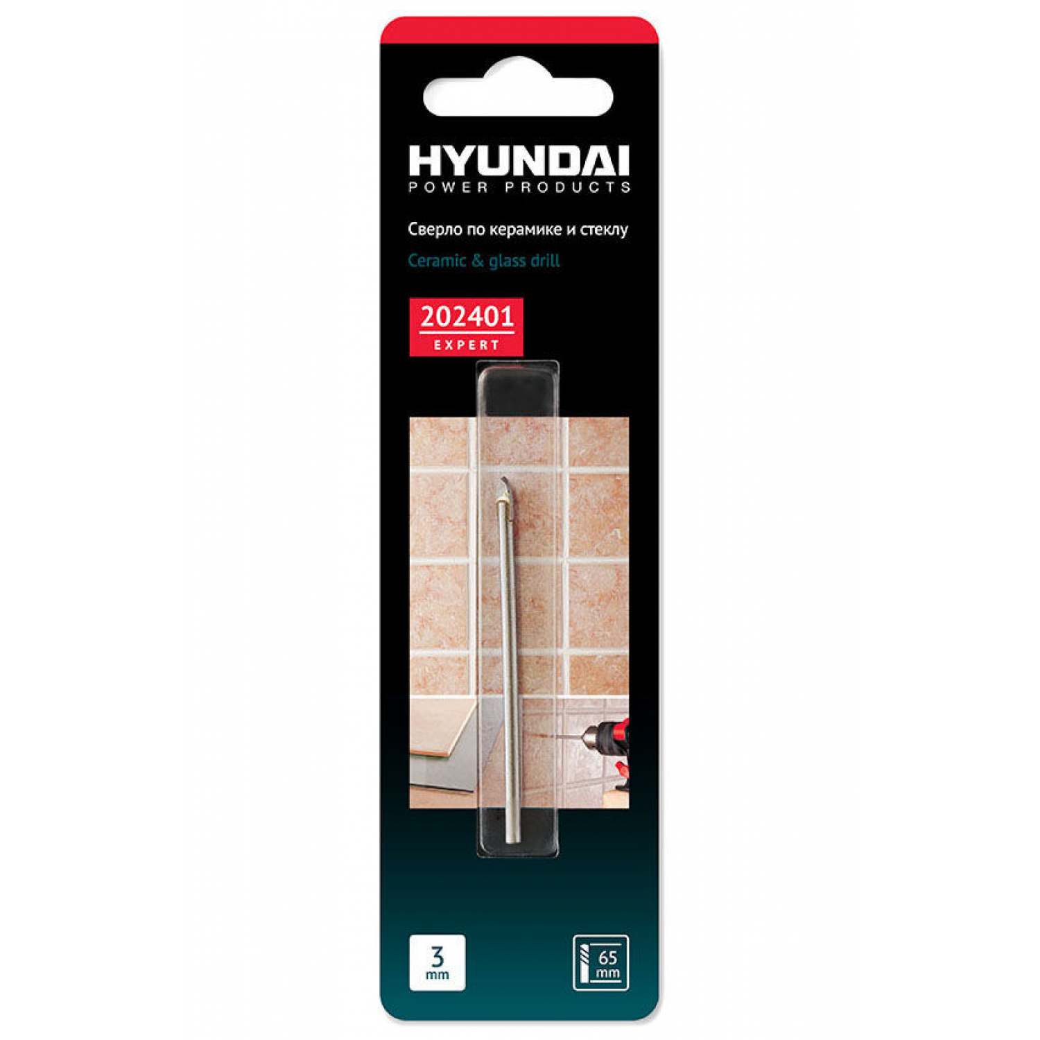 Сверло по стеклу и керамике 3х65мм (50/500) HYUNDAI