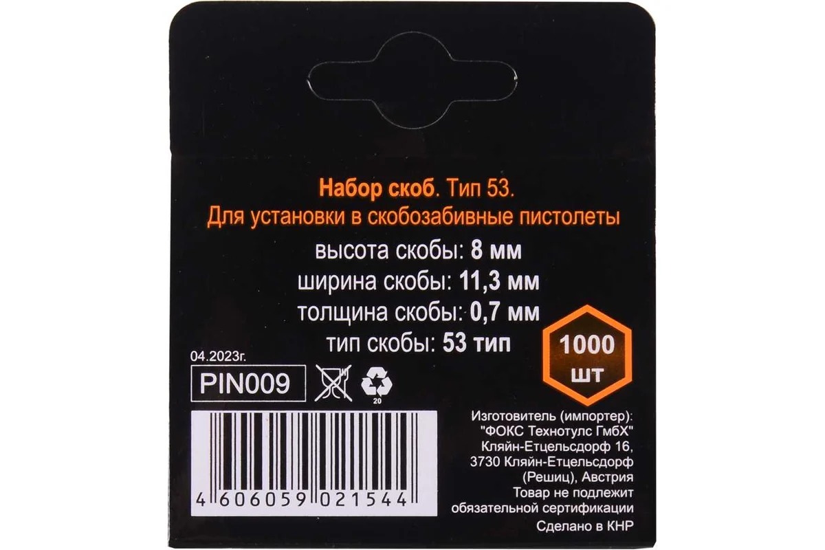 Скобы для мебельного степлера (8 мм, тип скобы 53) (1000шт) Вихрь