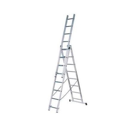 Складная алюминиевая трехсекционная лестница ВИХРЬ ЛА 3х7 на 7 ступеней при необходимости может использоваться как стремянка, стремянка с выдвижной третьей секцией, как приставная выдвижная лестница, а также третья секция съемная и может использоваться как отдельная лестница.