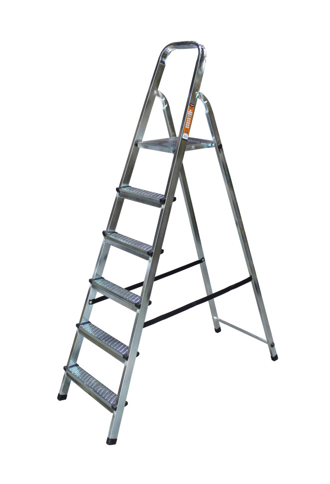 Стремянка стальная ВИХРЬ СС 1х6 - компактная и удобная в работе, широко применяется в быту. Прочный корпус изготовлен из стали. Покрыта гальваническим антикоррозийным покрытием. Односекционная модель с 5-ю широкими ступенями с рифленой поверхностью и рабочей площадкой. Чтобы стремянка не скользила, на опорах оборудованы заглушки. Также есть дуга безопасности. В сложенном состоянии модель очень компактна и занимает мало места.