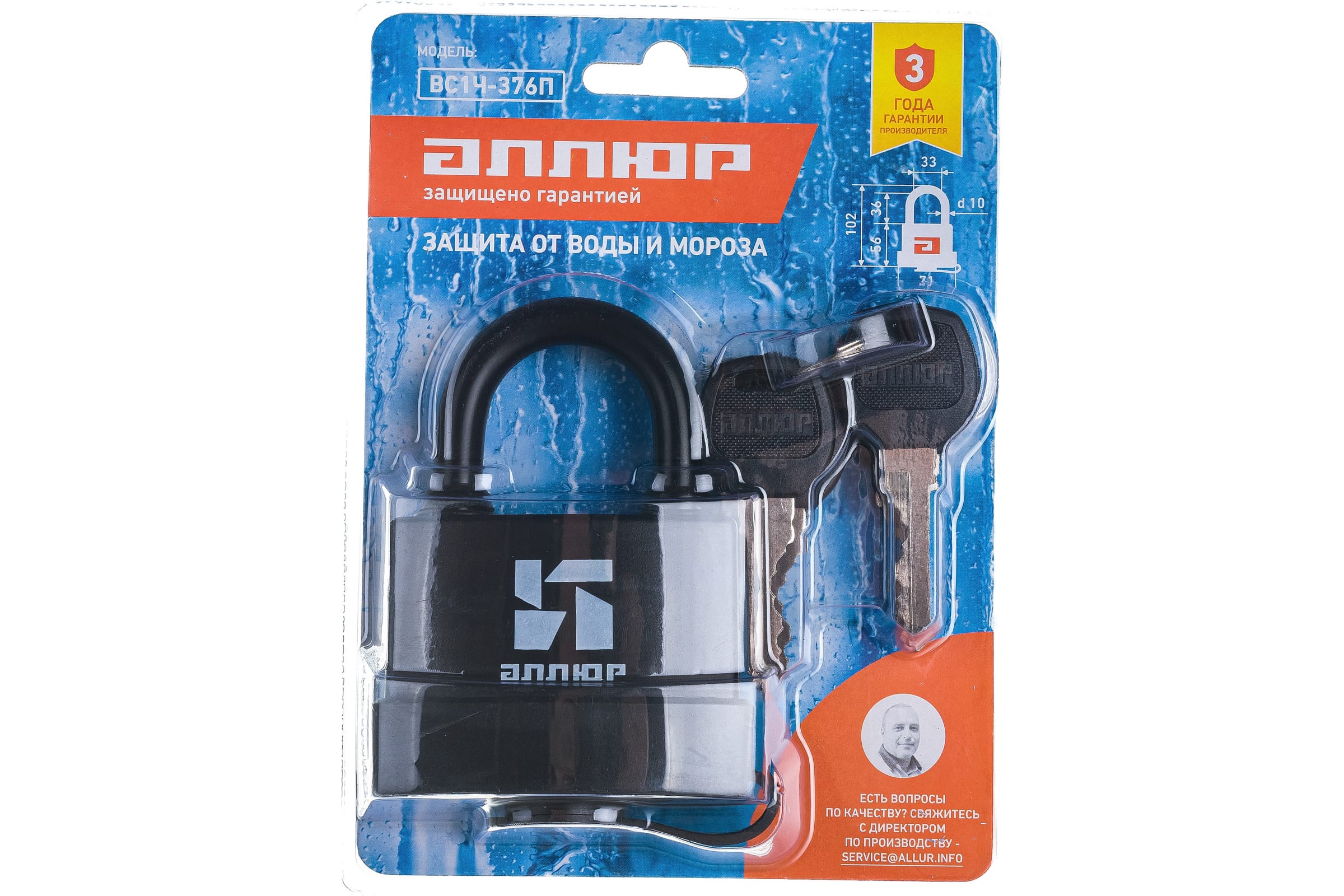 Замок навесной ВС1Ч-376П d10 мм влагозащ. 6кл. (6) АЛЛЮР