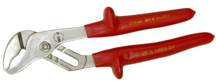 Диэлектрические переставные клещи SHTOK 1000В 250 мм 08210 используются для работы под напряжением. Для надежности удержания инструмента предусмотрены рукоятки со специальными упорами. Клещи выполнены из качественной стали.