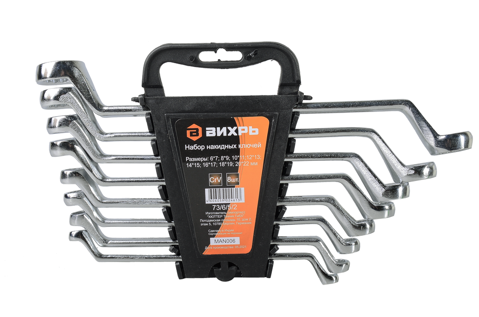 Набор ключей накидных 6-22мм 8шт Вихрь