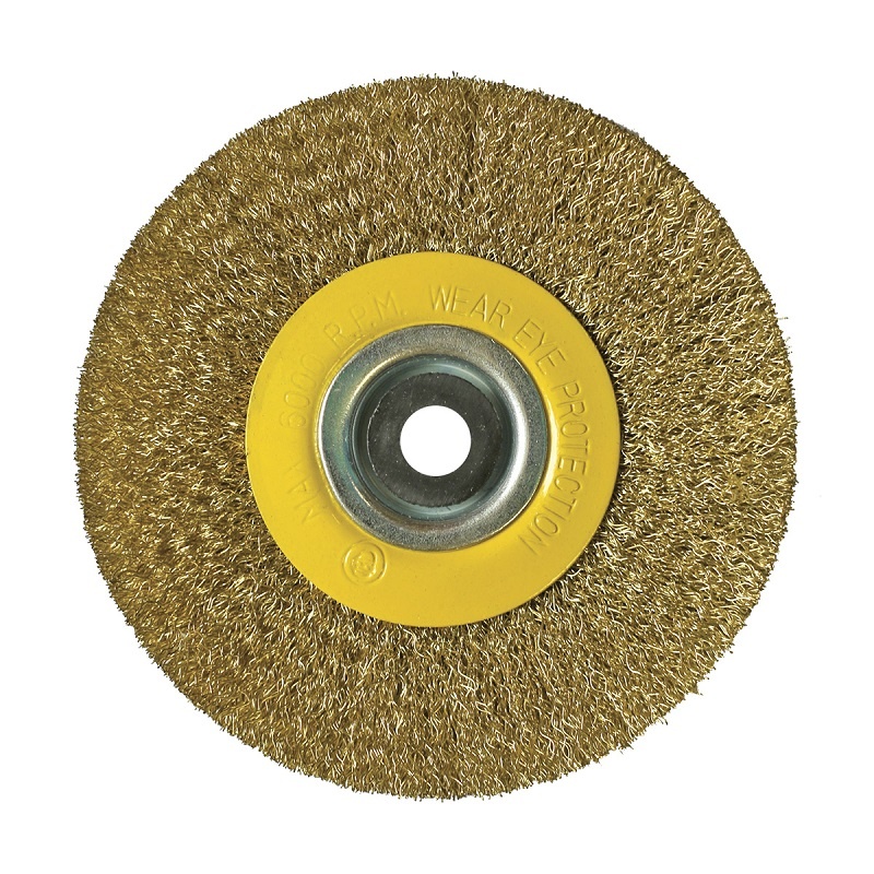 Используется в качестве насадки для электрических станков для крацевания поверхностей. Стальная проволока диаметром 0,3 мм с латунным антикоррозийным покрытием. Просадочное отверстие 20 мм. В комплект входят переходники для посадочного отверстия диаметром 12, 16 мм.