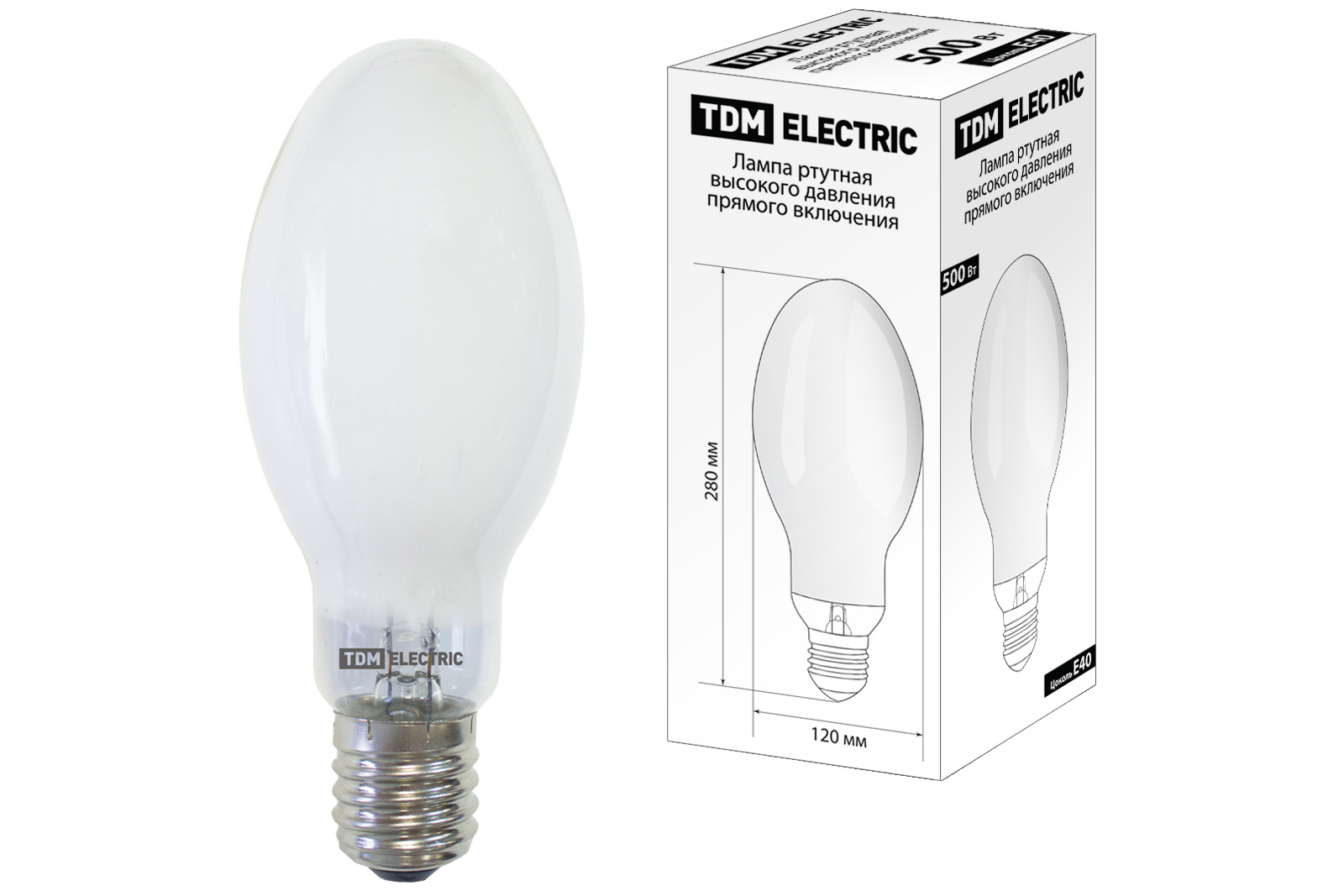 Лампа ртутная высокого давления прямого включения ДРВ 500Вт Е40 TDM