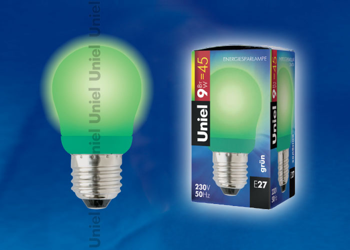 Лампа энергосберегающая ESL-G45-9Вт/E27 зеленая Uniel