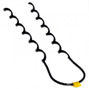 Вязка изготовлена из оцинкованной пружинной проволоки и и имеет стойкое полимерное покрытие, обеспечивающее необходимую прочность заделки провода.