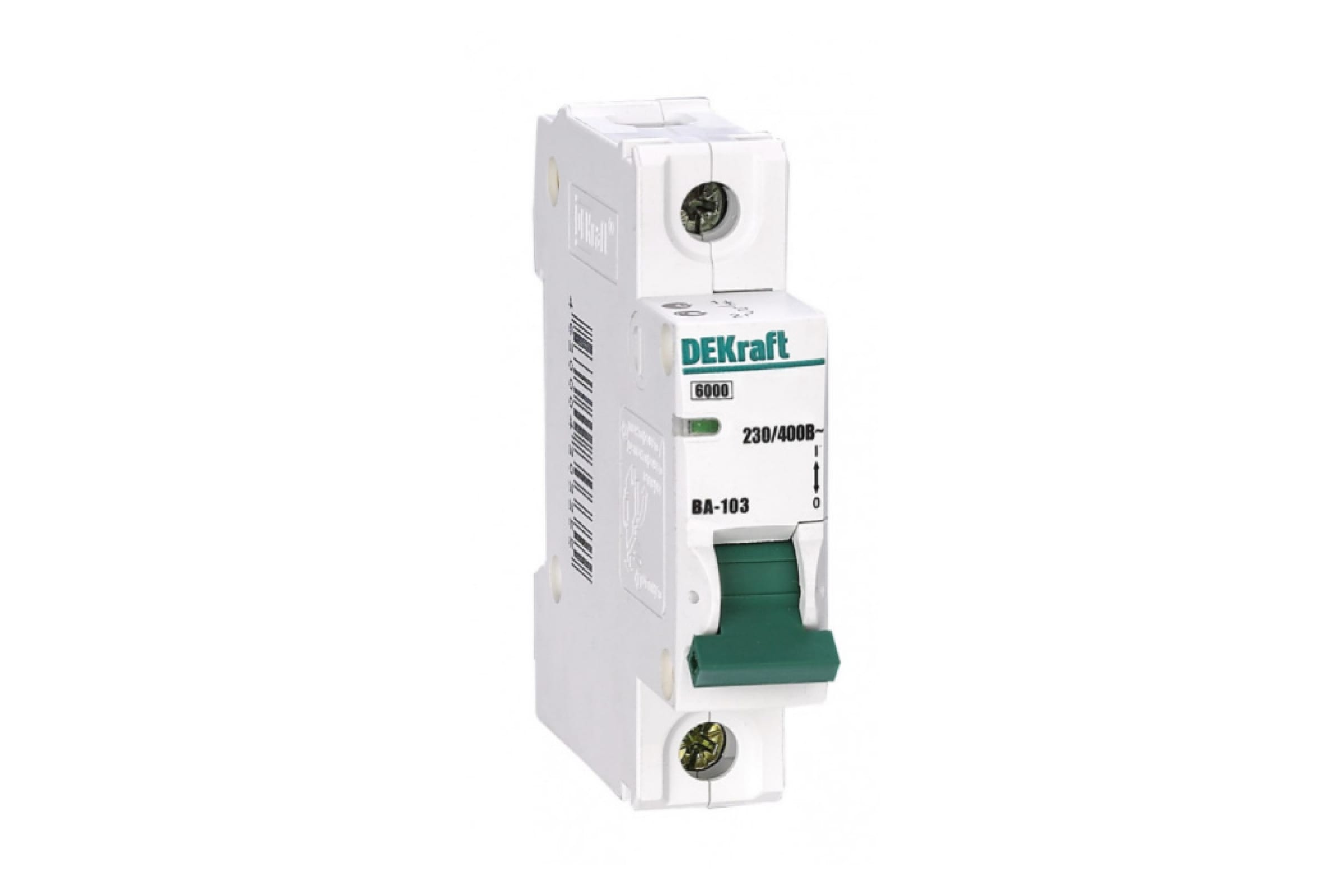 Автоматический выключатель серии ВА-103 DEKraft; 1P; номинальный ток 3 А; характеристика С; отключающая способность 6 кА. Исполнение на 6кА позволяет использовать аппараты серии ВА-103 в качестве вводных. Также аппараты серии ВА-103 можно дополнить модулем дифференциальной защиты и вспомогательными аксессуарами. Окошко-индикатор всегда показывает состояние аппарата вне зависимости от положения рукоятки управления. Клеммные заглушки обеспечивают защиту от хищения электроэнергии.