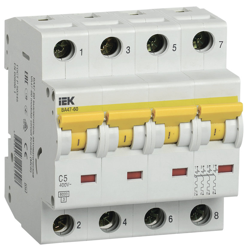 Автоматические выключатели ВА47-60 предназначены для автоматического отключения источника питания при появлении сверхтоков. Рекомендуются к применению в групповых щитках (квартирные и этажные), а также в учетно-распределительных щитах административных и жилых зданий. Два типа защиты от сверхтоков – тепловая и электромагнитная. Независимый индикатор положения контактов. Защелка на DIN-рейку с двойным фиксированным положением. Широкий диапазон рабочих температур от -40°С до +50°С. Широкая рукоятка для удобства включения/выключения автоматического выключателя. Насечки на контактных зажимах снижают тепловые потери и увеличивают механическую прочность соединения.