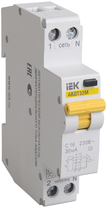 Автоматические выключатели дифференциального тока АВДТ32М для однофазных сетей в одномодульном исполнении (18мм) предназначены для защиты человека от поражения электрическим током при повреждении изоляции электроустановок, а также для защиты от перегрузки и короткого замыкания в сетях переменного тока напряжением 230 В и частотой 50 Гц и по своим характеристикам соответствуют ГОСТ Р 51327.2.2 и ГОСТ Р 31225.2.2.