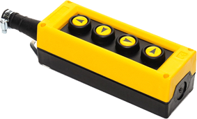Пульты управления EMAS серии PVK предназначены для управления кранами, кран-балками, тельферами, цепными и канатными талями, мостовыми и козловыми кранами. Также пульт серии PV может иметь несколько вариантов исполнения: двух, трех, четырех, пяти, шести, семи, восьми, девяти, десяти, одиннадцати и двенадцати кнопочные, и включать аварийный остановку, аварийный сигнал, сигнал, ключ марка, кнопка (переключатель) вкл / выкл питания, световым фильтром, клавишами увеличения или уменьшения скорости работы двигателя, двух или четырех позиционными джойстиками. Пульты управления EMAS изготовлены из высококачественного пластика армированного стекловолокном,