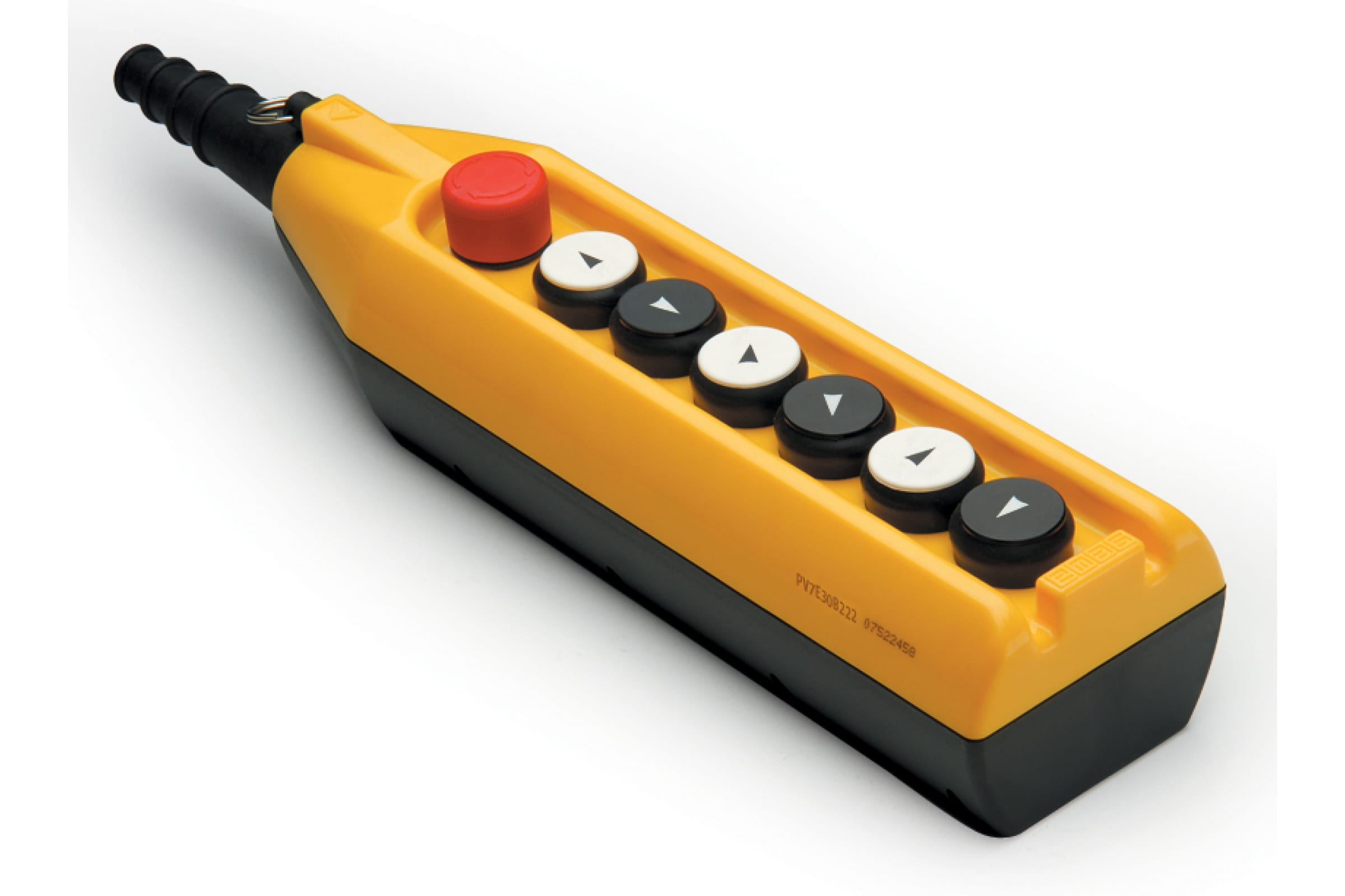 Пульты управления EMAS серии PV предназначены для управления кранами, кран-балками, тельферами, цепными и канатными талями, мостовыми и козловыми кранами. Также пульт серии PV может иметь несколько вариантов исполнения:двух, трех, четырех, пяти, шести, семи, восьми, девяти, десяти, одиннадцати и двенадцати кнопочные, и включать аварийный останов, аварийный сигнал, сигнал, ключ марка, кнопка (переключатель) вкл / выкл питания, световым фильтром, клавишами увеличения или уменьшения скорости работы двигателя, двух или четырех позиционными джойстиками. Пульты управления EMAS изготовлены из высококачественного пластика армированного стекловолокном,