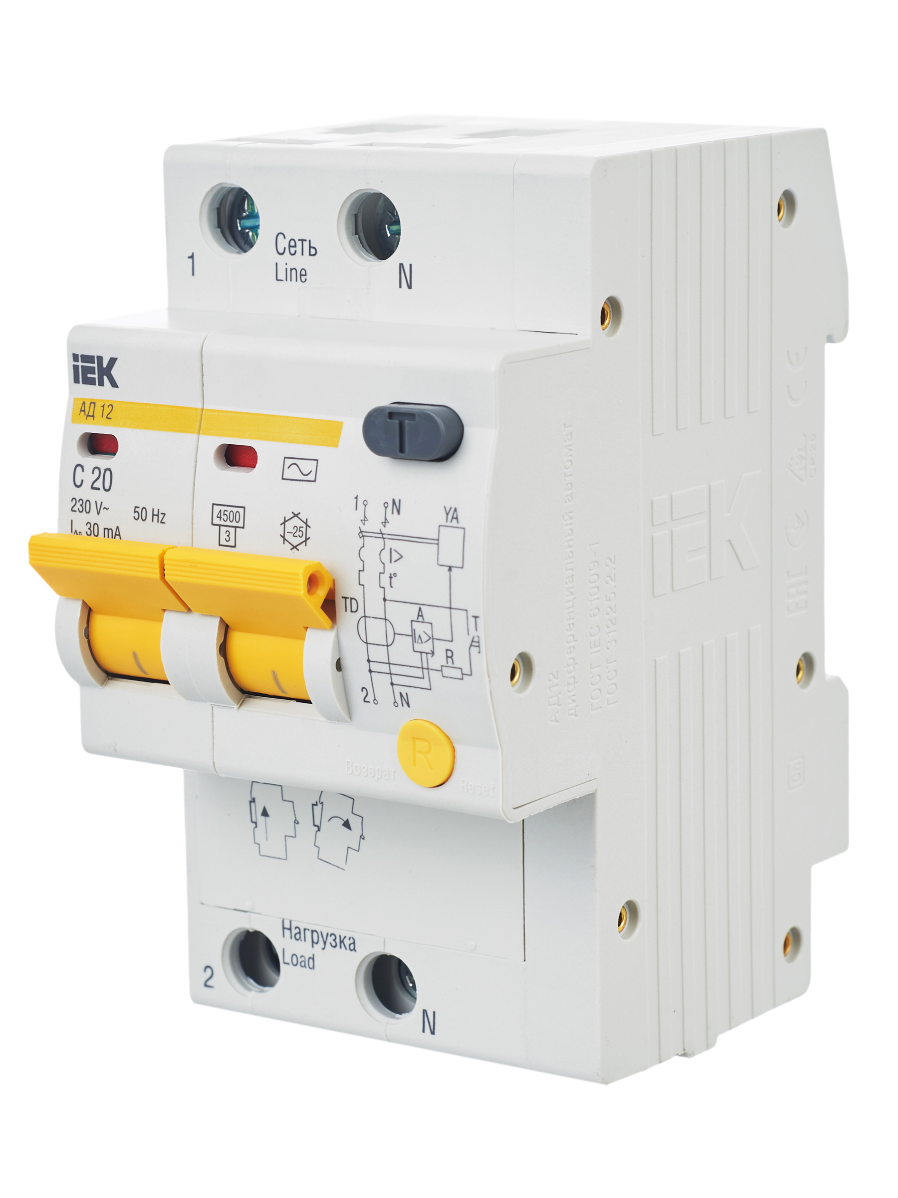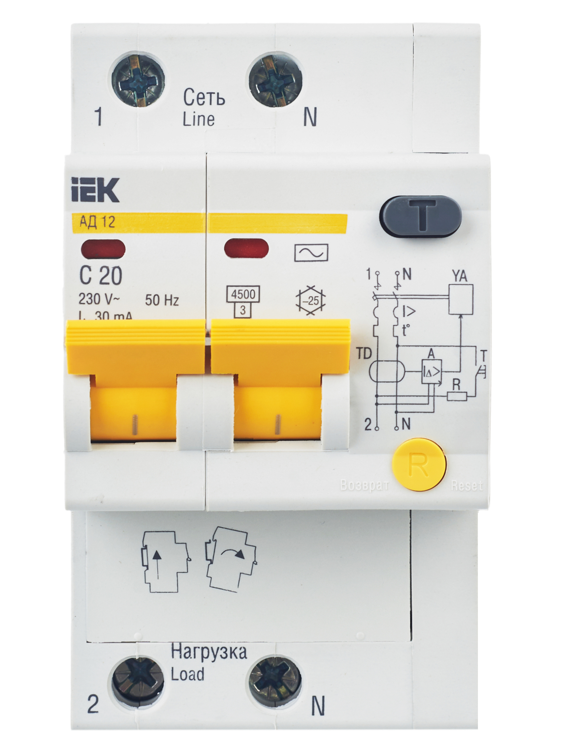 Выключатель дифференциальный (УЗО) АД 12 2Р 20А 30мА IEK