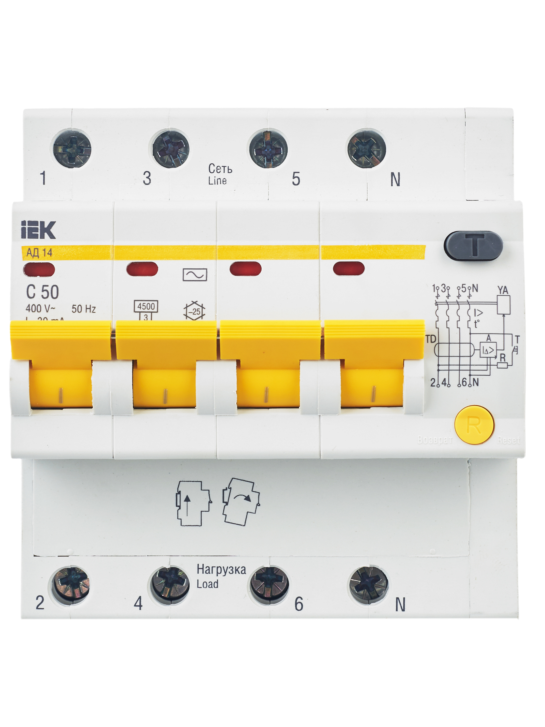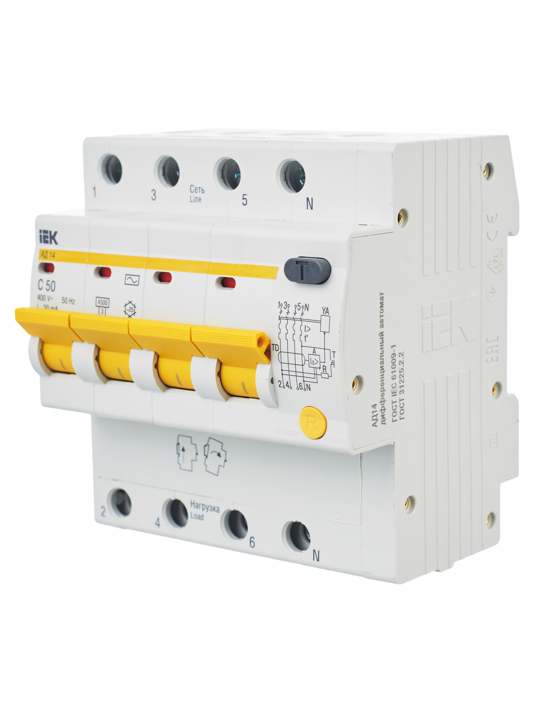 Выключатель дифференциальный (УЗО) АД 14 4Р 50А 30мА IEK