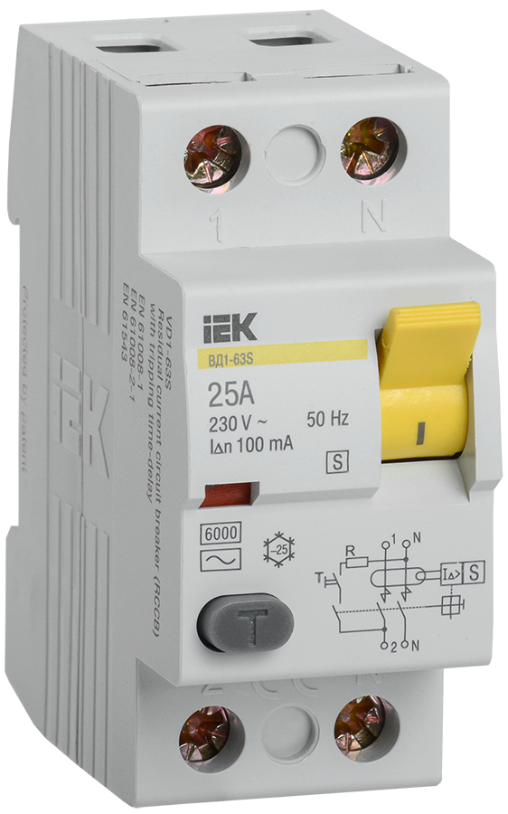 Выключатель дифференциальный (УЗО) ВД 1-63S 2P 25A 100мА IEK