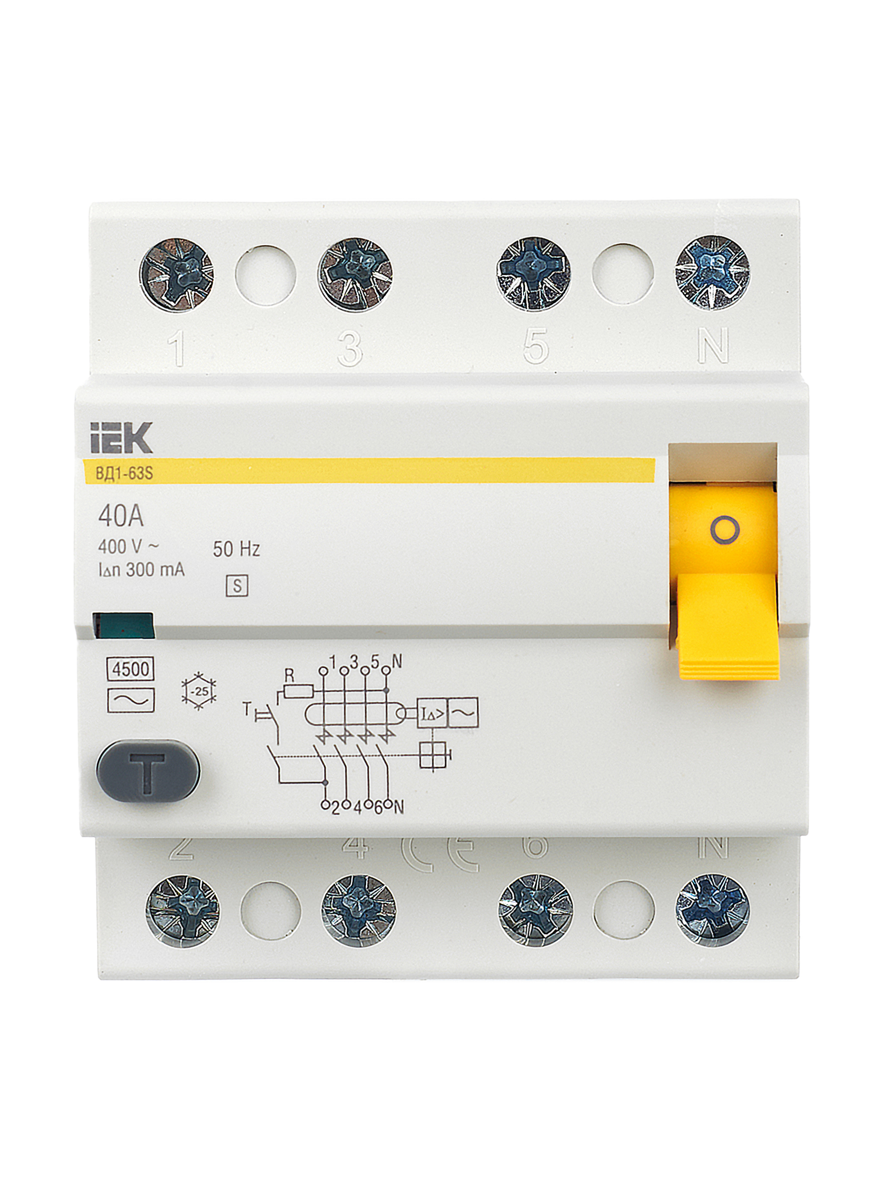 Выключатель дифференциальный (УЗО) ВД 1-63S 4Р 40А 300мА IEK