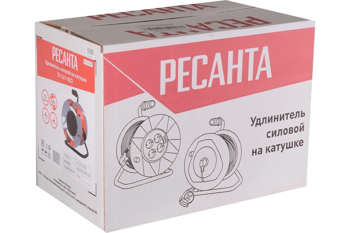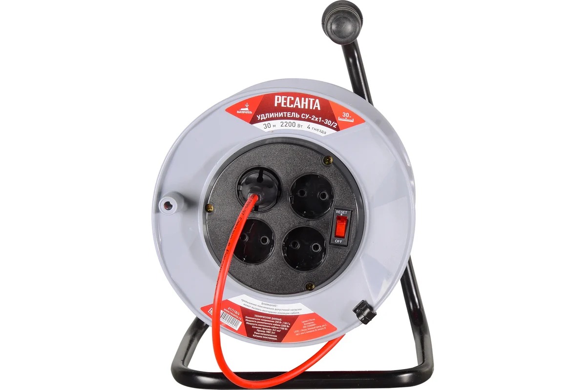 Удлинитель силовой на катушке СУ-2х1-50/2 (с выкл., 4 розетки) Ресанта
