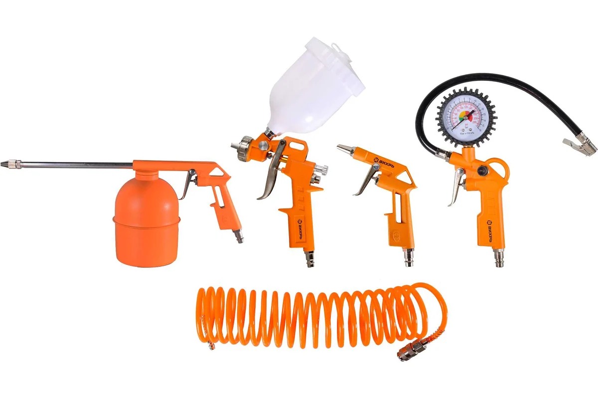 Набор пневмоинструмента ВИХРЬ НП-5 – это оборудование, которое работает от компрессора с помощью энергии сжатого воздуха. Универсальные соединительные разъемы подойдут для любых компрессоров.