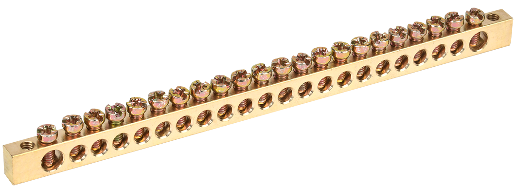Применяются в щитовом оборудовании для подсоединения нулевых рабочих (N) и нулевых защитных проводов (РЕ). Крепление шины предусмотрено по центру (типы 8/1; 14/1) и по краям (типы 8/2 и 14/2) через изолятор нулевой шины на 35 мм монтажную DIN-рейку и через угловые изоляторы нулевой шины, а также непосредственно на панель щита. При подключении к шинам медных многожильных проводов рекомендуется оконцевание их наконечниками-гильзами. Выполнены из латуни.