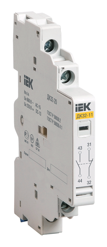 Дополнительные и аварийные контакты в одном корпусе ДК/АК 32 предназначены для увеличения количества вспомогательных контактов и сигнализации срабатывания ПРК32 от сверхтоков.